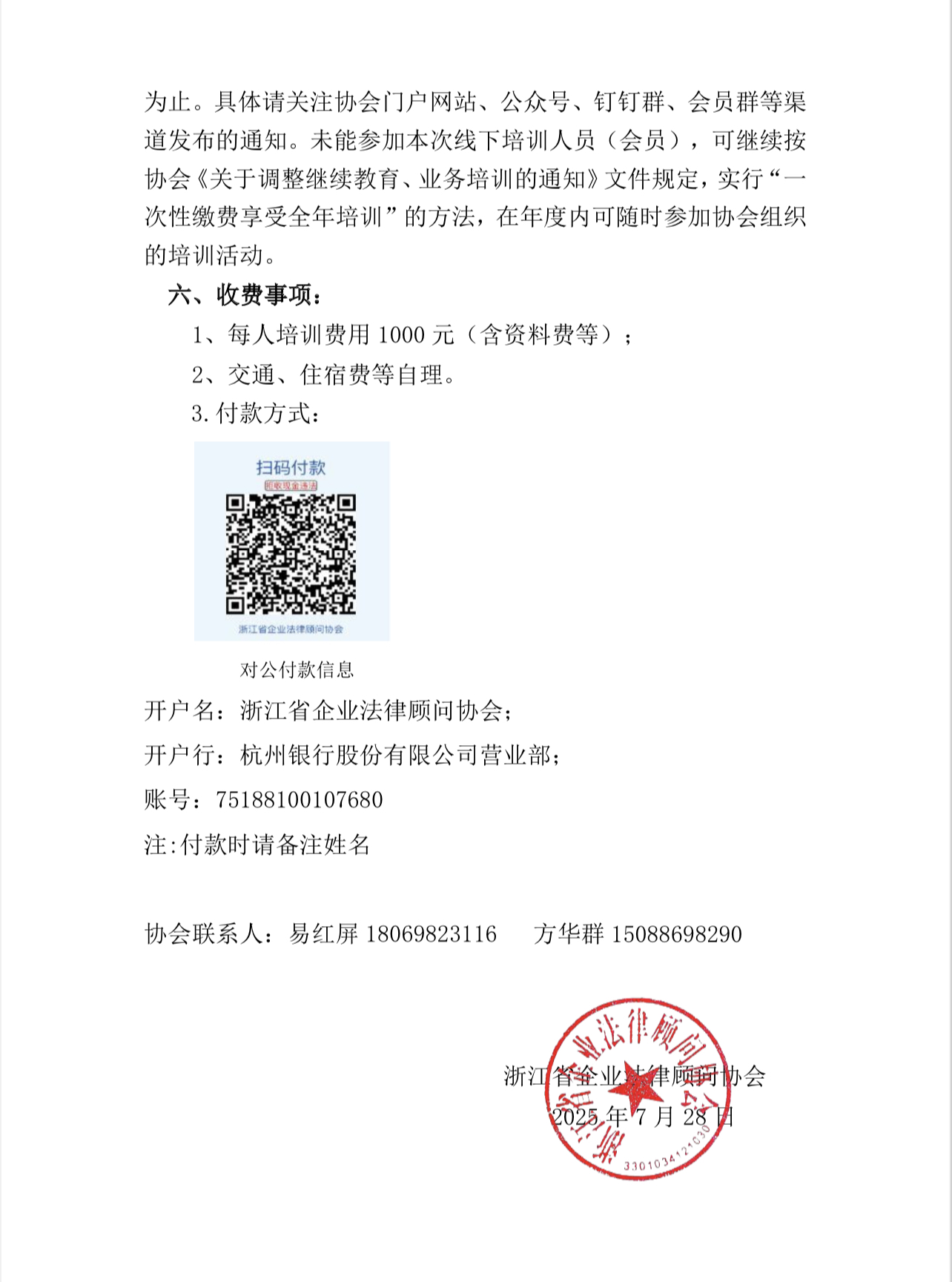 关于举办浙江省企业法律顾问 2025年第一期业务培训班的通知